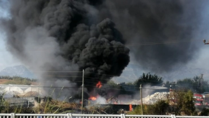 Antalya'nın Serik ilçesinde dün makilik alanda meydana gelen yangının ardından bu kez de plastik atık ve hurdalıkların bulunduğu bir arazide yangın çıktı.