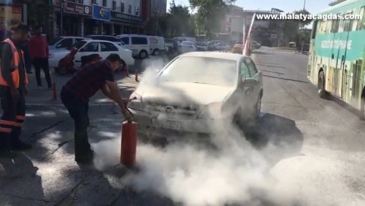 Edinilen bilgilere göre, sürücüsü öğrenilemeyen 34 DJ 8383 plakalı Opel marka otomobilin motor kısmı seyir halinde olduğu esnada Turgut Reis mahallesi eski Adıyaman Valiliği yakınlarında alev alarak yandı.