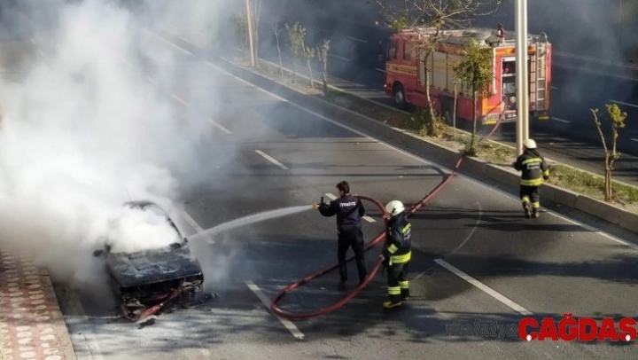 Diyarbakır'da bir otomobil, seyir halindeyken alev aldı. Ölen ya da yaralanın olmadığı olayda araç, kullanılamaz hale geldi.