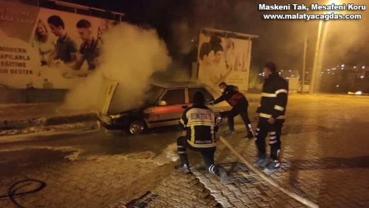 Adıyaman'ın Besni ilçesinde seyir halindeyken alev alan otomobil, itfaiye ekiplerinin çalışmaları sonucu söndürüldü.