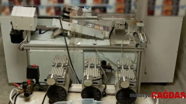 Kaçakçılık ve Organize Suçlarla Mücadele Şube Müdürlüğü tarafından ikametlerini sigara imalathanesi olarak kullanan şahıslara yönelik yapılan çalışmalar kapsamında 2 şahıs yakalandı. Sigara imalathanesi olarak kullanılan ikamette yapılan aramada 1 adet elektrikli sigara sarma makinesi, 1 adet kompresör, 17 adet tekrar kullanılmak üzere sökülmüş tütün bandrolü, bandrollü ve bandrolsüz olmak üzere toplam 43,5 kilogram tütün, 239 kutu toplam 47 bin 800 dal makaron, 43 kutu toplam 8 bin 600 dal sarılmış sigara ele geçirildi.