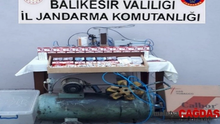 Sındırgı'da jandarma ekipleri aldıkları bir bilgi sonrası Ş.A. isimli şahsa ait evde yapılan aramada; 1 adet otomatik sigara doldurma makinesi, 1 adet kompresör, bin 500 adet boş makaron, bin 500 adet dolu makaron, 20 kg kıyılmış tütün ele geçirildi. Olayla ilgili olarak Cumhuriyet Savcılığına bilgi verilerek, alınan talimat ile ele geçirilen malzemelere el konularak şüpheli hakkında adli tahkikata başlanıldı.