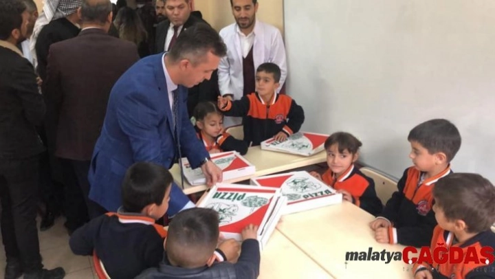Sınır köylerinde okuyan öğrencilere pizza sürprizi