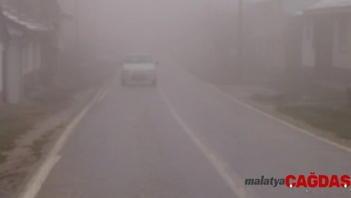 Bilecik'in Pazaryeri ilçesinin sis etkisi altına alırken, görüş mesafesi 20 metrenin altına düştü.