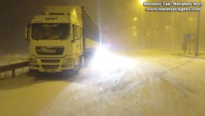 Sivas'ta akşam saatlerinde etkili olan kar yağışı ve tipi nedeniyle Sivas-Malatya karayolu ulaşıma kapatıldı.