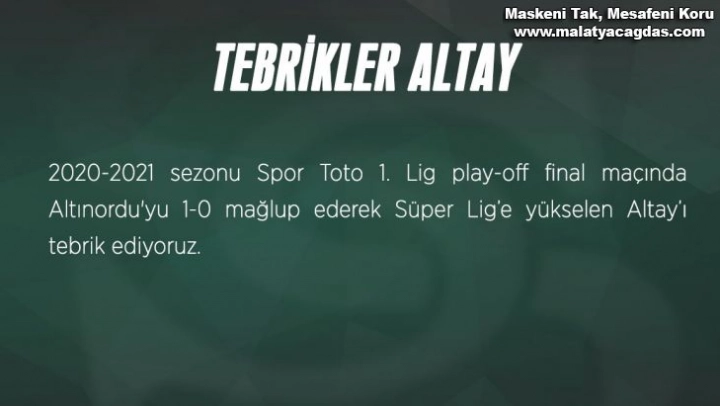 'Tebrikler Altay' başlığıyla yayımlanan mesajda, '2020-2021 sezonu Spor Toto 1. Lig play-off final maçında Altınordu'yu 1-0 mağlup ederek Süper Lig'e yükselen Altay'ı tebrik ediyoruz. Süper Lig'e hoş geldin Altay Spor Kulübü' ifadelerine yer verildi.