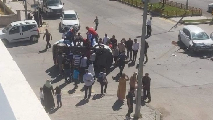 Erzurum'da sivil araç ile çarpışan polis aracı devrildi. Kaza sonucunda yaralananlara ilk müdahaleyi yapan çevredeki vatandaşlar, devrilen polis aracını da kaldırarak düzeltti.