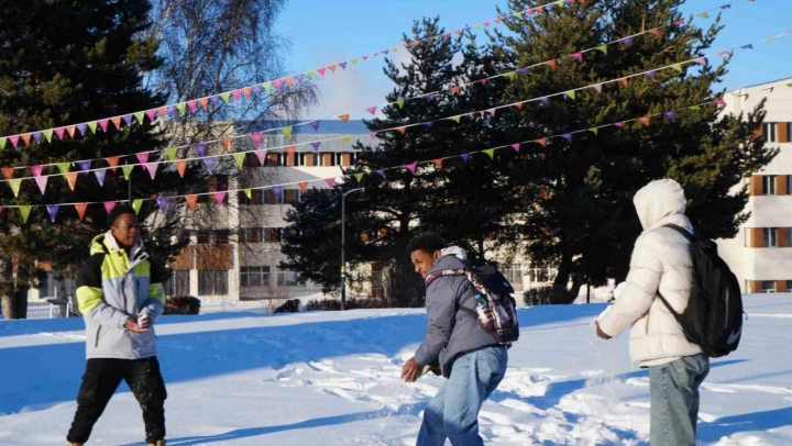 Öğrenim hayatlarına devam eden ve hayatlarında ilk kez kar yağışını gören Afrikalı öğrenciler hayretlerini gizleyemediler.
