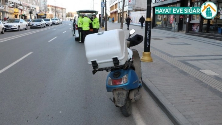 Kent merkezi İnönü Bulvarı üzerinde denetimler sırasında polis ekipleri bir motosikletli kurye durdu. Yapılan kontrollerde M.E. adındaki kuryenin 19 yaşında ehliyetsiz ve trafik yönünden bazı kusurların bulunduğu tespit edildi. Korona virüs tedbirleri kapsamında sokağa çıkma yasağı bulunan kuryeye sokağa çıktığı için kabahatler kanunu çerçevesine 392, trafik kusurları yönünden ise 7 bin 500 olmak üzere toplamda 7 bin 892 lira para cezası kesildi. Motosiklet trafikten men edilirken genç kurye ise dışarı çıkmaması konusunda ekipler tarafından uyarılarak evine gönderildi.