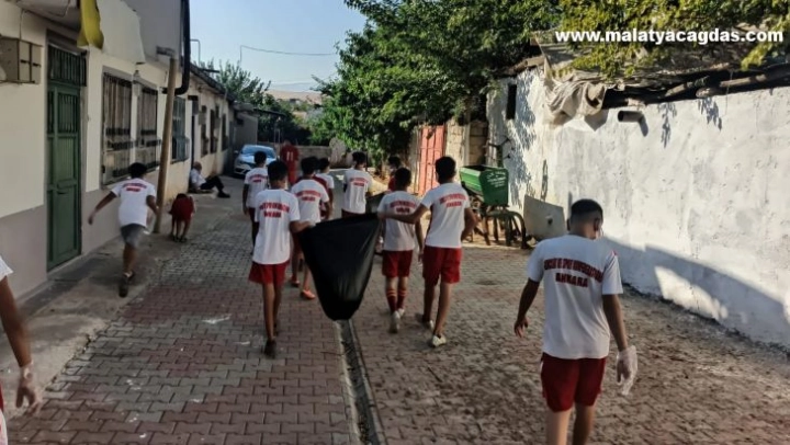 Adıyaman'ın Besni ilçesine bağlı Şambayat Beldesi'nde sokak ve caddeleri sporcular temizledi.