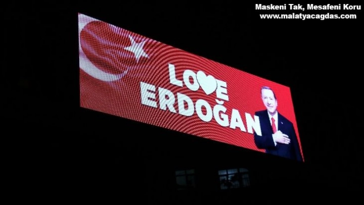 Elazığ'da led ekranlar Cumhurbaşkanı Recep Tayyip Erdoğan'a destek amaçlı 'Love Erdoğan görseliyle yandı.