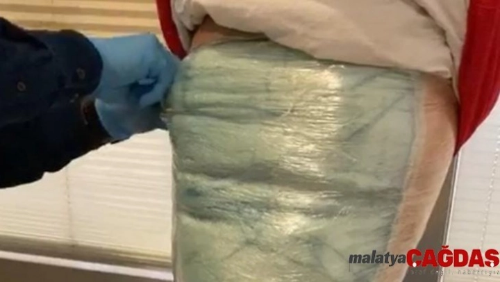 Streç filmle vücuduna sardığı uyuşturucuyla uçağa binmek isterken yakalandı