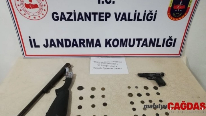 Şehitkamil ilçesi Bilek Mahallesi'nde devriye gezen Arıl Jandarma Komutanlığı ekipleri, seyir halinde olan 27 LA 240 plakalı aracı şüphe üzerine durdurdu. Yapılan aramada 40 adet tarihi sikke, marka ve seri numarası belli olmayan ruhsatsız tek kırma av tüfeği, 1 adet faturasız kuru sıkı tabanca ele geçirildi. Sikke, tüfek ve tabancaya el konulurken, Gaziantep Müze Müdürlüğü tarafından yapılan ilk incelemede sikkelerin Roma ve Bizans dönemlerine ait olduğu belirlendi.