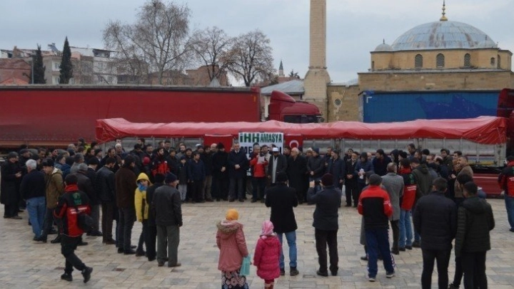 İnsani Yardım Vakfı (İHH) Merzifon İlçe Temsilciliği aracılığıyla Suriye'nin İdlib kentinde yaşayan siviller için 3 bin 120 çuval un bağışı toplandı. Toplanan unlar 6 tane tıra yüklendi ve İdlib'de yaşayan sivillere ulaştırılmak üzere yapılan dualarla yola çıktı. Yardım konvoyunun gönderildiği programa AK Parti Amasya Milletvekili Hasan Çilez, İHH Merzifon İlçe Temsilcisi Muhammed Yavuz Çintaş, sivil toplum kuruluşu üyeleri ve çok sayıda vatandaş katıldı.
