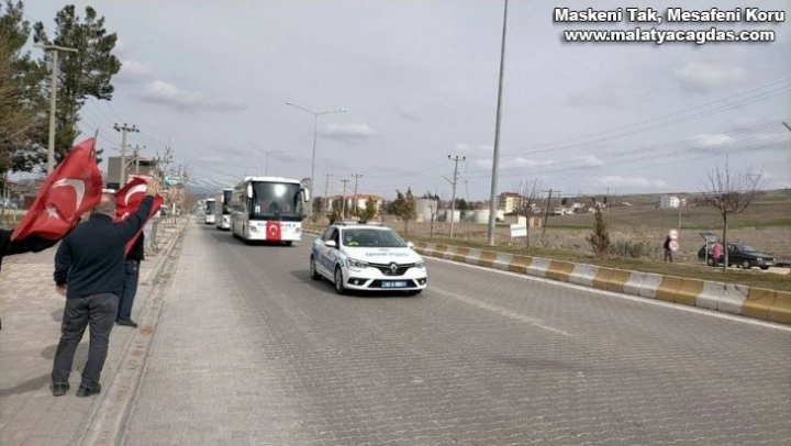 Adıyaman'ın Gölbaşı ilçesinden geçerek Suriye'ye giden Serdarlar Taburuna vatandaşlar büyük ilgi gösterdi.