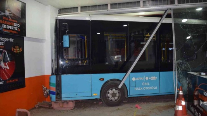 Sürücüsü kalp krizi geçiren otobüs oto bakım servisine daldı: 2 yaralı