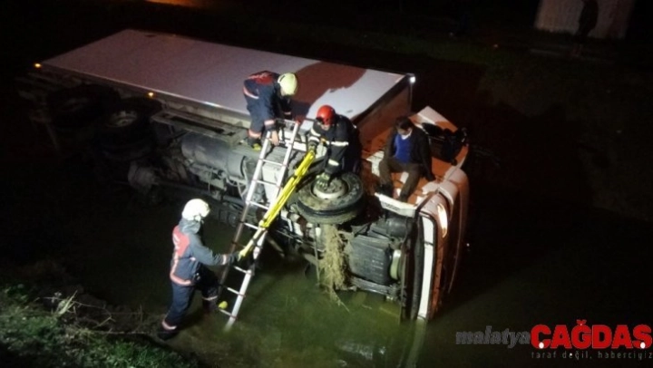 Sürücüsünün direksiyon hakimiyetini kaybettiği kamyon dereye uçtu