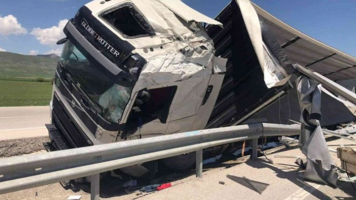 Cam yüklü tır, orta refüjdeki kanala girerek ancak durabildi. Olayda büyük ölçüde maddi hasar oluşurken, can kaybı olmaması sevindirdi.