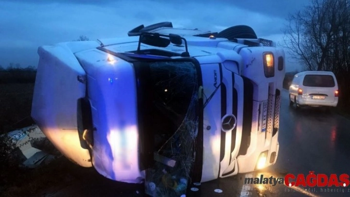 Sakarya'nın Erenler ilçesinde sürücüsünün direksiyon hakimiyetini kaybetmesi sonucu kontrolden çıkan tır devrildi. Meydana gelen kazada yaralanan tır şoförü hastaneye kaldırıldı.