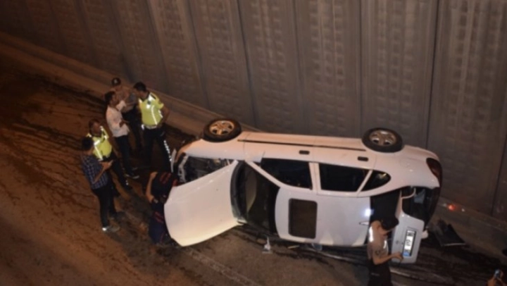 Malatya'da direksiyon hakimiyeti kaybolan bir otomobil, alt geçitte takla atarak kaza yaptı. Kazada araçta bulunan 2 kişi şans eseri burunları bile kanamadan kurtuldu.