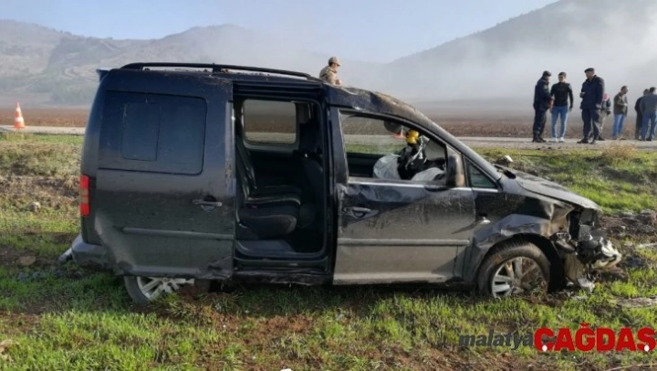 Gaziantep'in İslahiye ilçesinde otomobil ile çarpışan hafif ticari araç taklalar atarak tarlaya uçtu. Araç sürücüsünün yara almadığı kazada sürücünün eşi ve çocuğu ise hafif yaralandı.