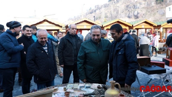 45 esnafın tezgah açtığı pazarı gezen Talas Belediye Başkanı Mustafa Yalçın, esnafı tek tek dolaşarak hayırlı işler temennisinde bulundu. Esnaftan alış veriş de yapan Başkan Yalçın, 'Dört aydan beri antika pazarına devam ediyoruz. Her ay gelen esnaf sayısı artıyor. Şuan 45 esnafa ulaştık. Bugün çok enteresan ürünler var. Mal demek istemiyorum çünkü bunların bir antika değeri var. Her şey antika olmuyor. Eski olmalı, ilk olmalı, tek olmalı, bir hatırası bir hafızası olmalı. Bu nedenle de burada antika severlerle bir araya geliyoruz. Hem tarihi bilgiler alıyoruz hem de eserler üzerinde sohbet ediyoruz. Dostlarımızla da buluşmuş oluyoruz. Alan memnun satan memnun. Soğuğa rağmen çok kalabalıktı.' dedi.
