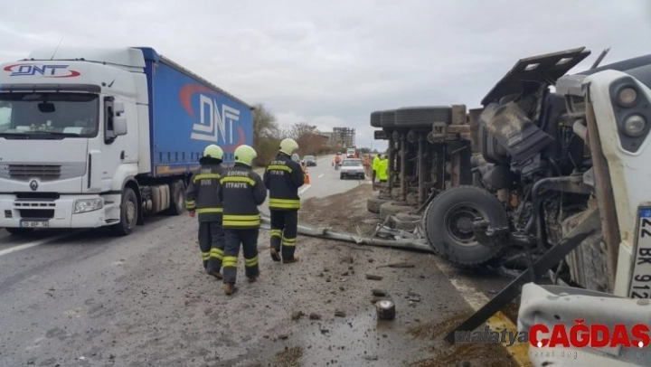 Kontrolden çıkan kamyon, demir bariyerlere çarptıktan sonra devrildi. Hafif yaralanan kamyon sürücüsü Demirelli, sağlık ekiplerince Trakya Üniversitesi Tıp Fakültesi Hastanesine kaldırıldı.