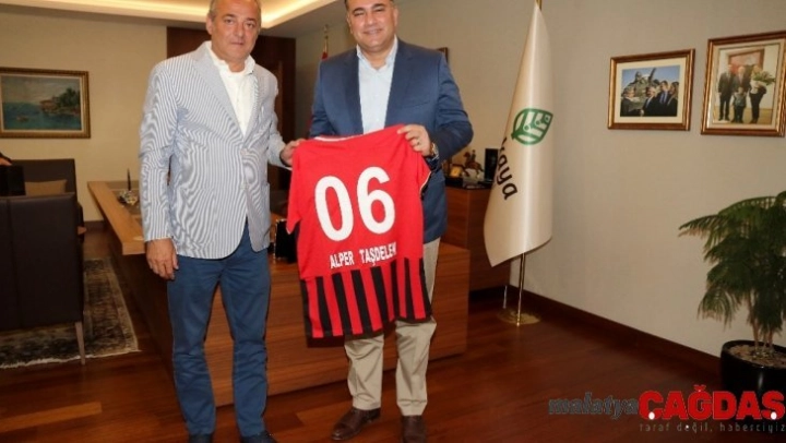 Gençlerbirliği Kulüp Başkanı Murat Cavcav da Taşdelen'e ikinci dönemi için başarı dileğinde bulunurken Taşdelen'e üzerinde 06 Alper Taşdelen yazılı bir forma hediye etti.