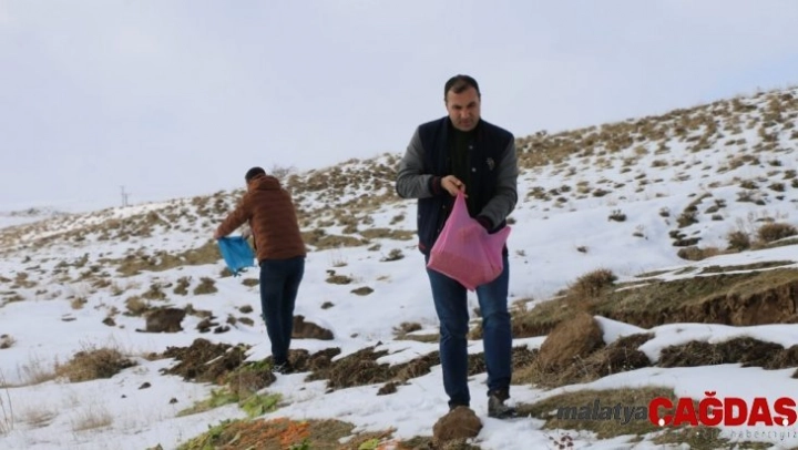 Bitlis'in Tatvan ilçesinde bir araya gelen sivil toplum kuruluşu (STK) temsilcileri, yabani hayvanlar için doğaya yiyecek bıraktı.