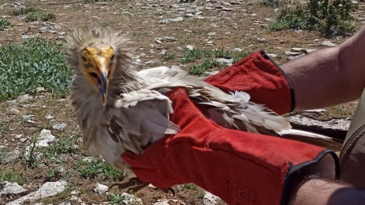 Adıyaman'da, yaralı halde bulunan ve tedavi ettirilen nesli tehlikede olan küçük akbaba, doğaya salıverildi.