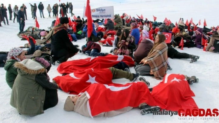Tekden Koleji tarafından düzenlenen Vatan Sevgisi Yürüyüşü'nde öğrenciler, soğuk havada cepheye mühimmat taşıdı.