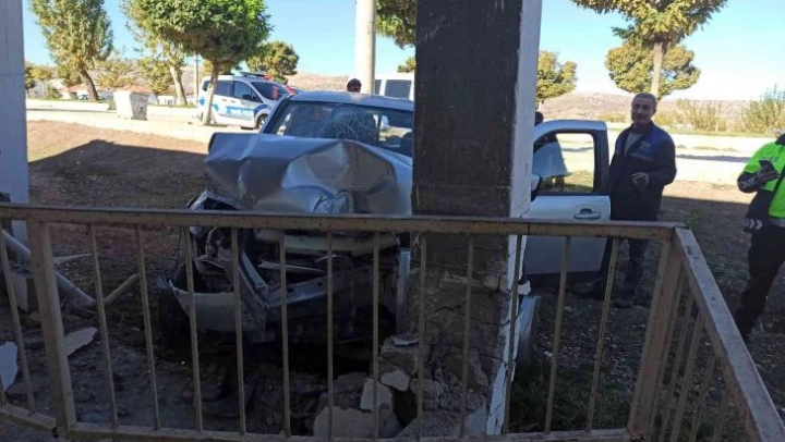 Adıyaman'ın Gölbaşı ilçesinde tekeri patlayan kamyonet ikametin balkonuna çarptı.