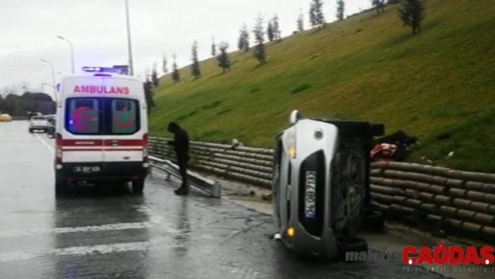 TEM Otoyolunda araç yan yattı :1 yaralı