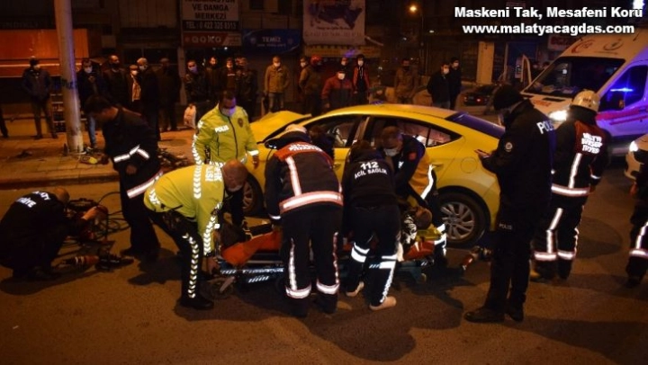 Edinilen bilgilere göre, Metin K. (37) idaresindeki Hyundai marka 44 T 0374 plakalı ticari taksi sürücüsünün direksiyon hakimiyetini kaybetmesi sonucu yol kenarındaki aydınlatma direğine çarptı. Çarpmanın şiddeti ile araç geri geri 3-4 metre savrulurken, sürücü araç içerisinde sıkıştı.