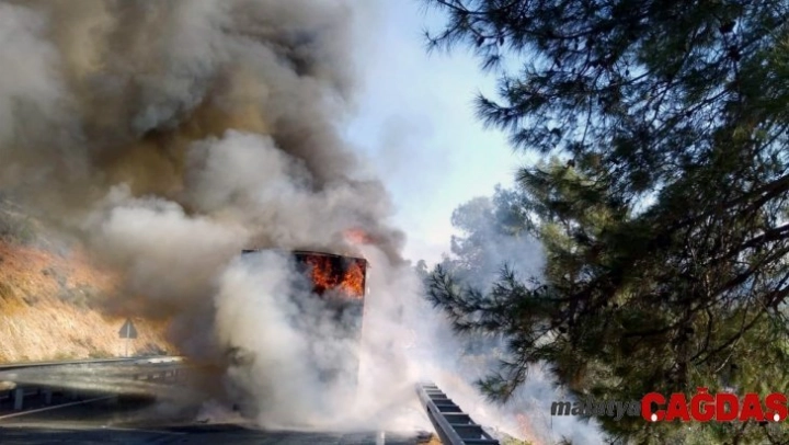 Muğla'da gıda yüklü tır elektrik aksamından çıktığı tahmin edilen yangın sonrası tamamen yandı. Yol kısa süreliğine trafiğe kapatıldı.