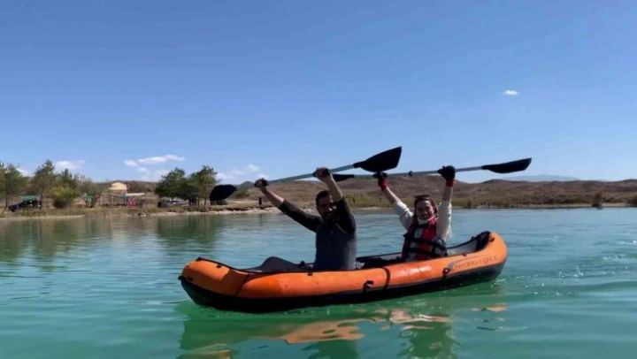 Sivas'ın Zara ilçesinde bulunan Tödürge Gölü'nde Sivas Doğa Sporları Arama ve Kurtarma Kulübü sporcuları kano faaliyetlerine başladı.