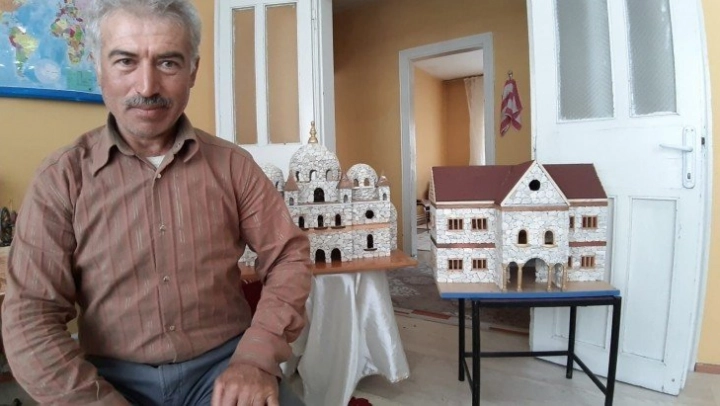 Malatya'nın Battalgazi ilçesinde yaşayan 55 yaşındaki inşaat işçisi Ramazan Otlu, 35 yıldır hobi olarak taştan maketler yapıyor.
