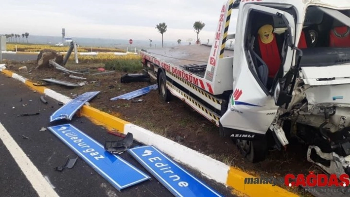 İddiaya göre, Lüleburgaz'da faaliyet gösteren araç geri dönüşüm firmasına ait kurtarıcı, sürücüsünün bir anlık dikkatsizliği neticesinde direksiyon hkimiyetini kaybetmesi sonucu trafik uyarı levhasına çarptı. Kazada levha kökünden çıkararak paramparça olurken, kurtarıcıda da büyük maddi hasar meydana geldi.