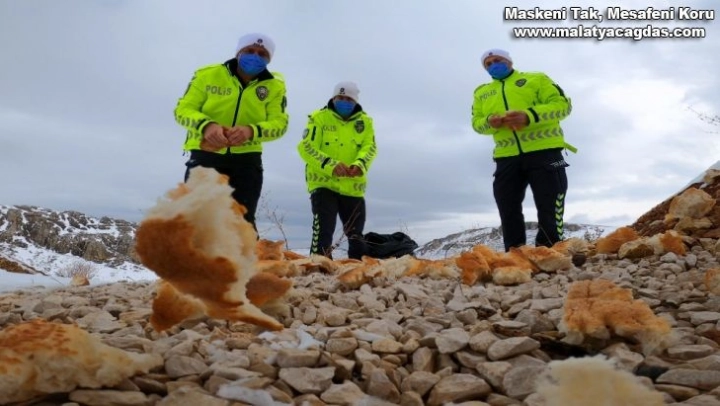 Darende Bölge Trafik İstasyon Amirliği'nde görev yapan polis ekipleri, dağlarda yem bulmakta zorlanan hayvanlar için ekmek ve yem bıraktı.