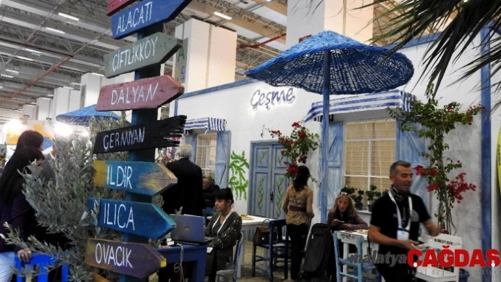 Alaçatı'nın sokaklarını ve plajlarının incecik kumlarını standına taşıyan Çeşme, ünlü Çeşme mandalinası, Çeşme limonu, zeytin ağaçlarını ve Alaçatı sokaklarını renklendiren begonvilleri ile turizm fuarında dikkat çekti.