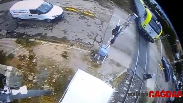 Adıyaman'ın Gölbaşı ilçesinde hemzemin geçitte trenin çarpması sonucu yaşlı kadının hayatını kaybettiği kaza anı güvenlik kameralarına yansıdı.