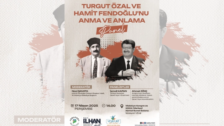 17 Nisan 2025 Perşembe günü saat 14:00'de Malatya Kongre ve Kültür Merkezinde gerçekleşecek panelde Malatya ve ülke siyasetine damga vuran Turgut Özal ile Hamit Fendoğlu, Türkiye'nin siyasi, toplumsal ve kültürel hayatındaki yerleri; vizyonları, mücadeleleri ve bıraktıkları izler, dönemin tanıkları ve alanında uzman konuklar tarafından ele alınacak.