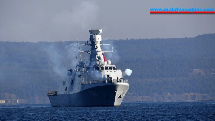 Türk korvetinden Çanakkale Zaferi'nin yıl dönümünde selamlama atışı