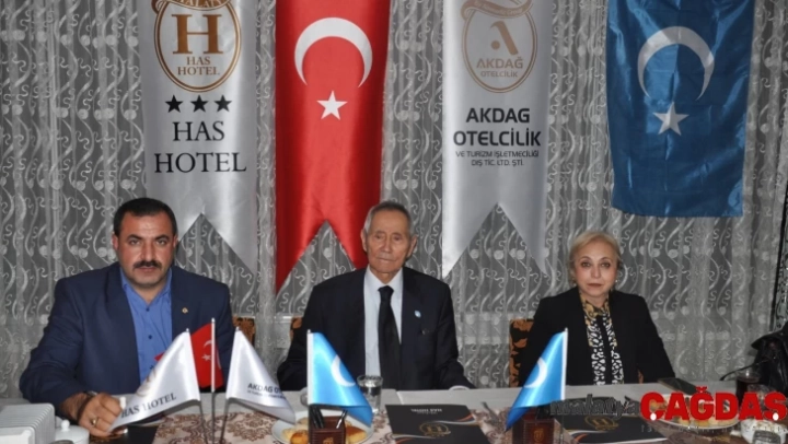 Has otelde Malatya Demokrasi Platformu Genel Sekreteri A. Ece Budan ve yöneticiler ve Basın mensupları ile bir araya gelen Doğu Türkistan Sürgün Hükümeti Cumhurbaşkanı vekili Hızırbek Gayretullah “ Tek Kalemiz Türkiye “ dedi.