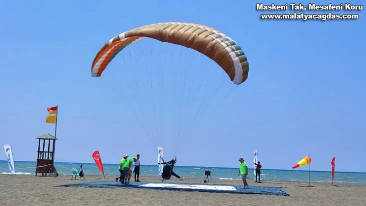 Türkiye Yamaç Paraşütü Hedef Şampiyonası'nın Hatay etabında genel klasmanda Kerem Dinçer, kadınlar klasmanında ise Kübra Cengiz birinci oldu.