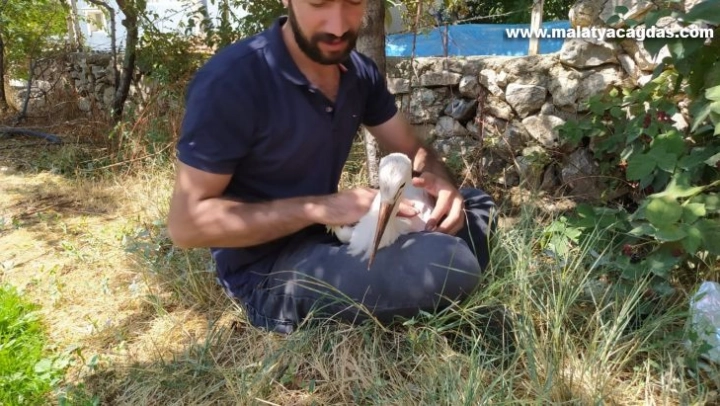 Uçamayan leyleği besleyip yetkililere teslim etti