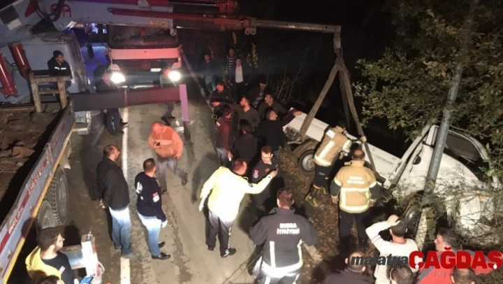 Kamyonetin uçuruma yuvarlanma riski sebebiyle titizlikle yürütülen çalışmalara vinç de eklendi. Vinç kamyoneti bulunduğu yerden çıkardıktan sonra itfaiye ekipleri araç içindeki genç adamı sıkıştığı yerden kurtardı. Yaralılar olay yerindeki ambulanslarla Orhangazi Devlet Hastanesine kaldırıldı.