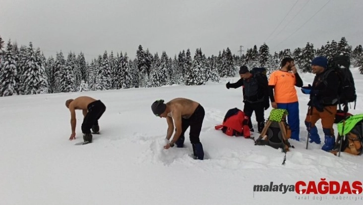 Uludağ'da 1,5 metre karda yürüdüler, kar üstünde güreş tuttular