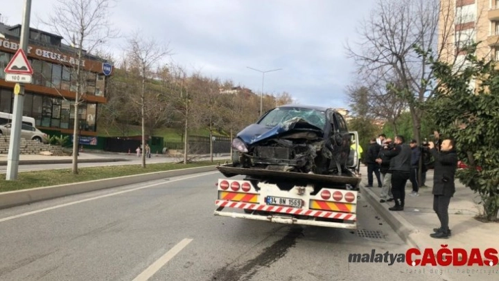 Ümraniye'de aydınlatma direğine çarpan araç takla attı