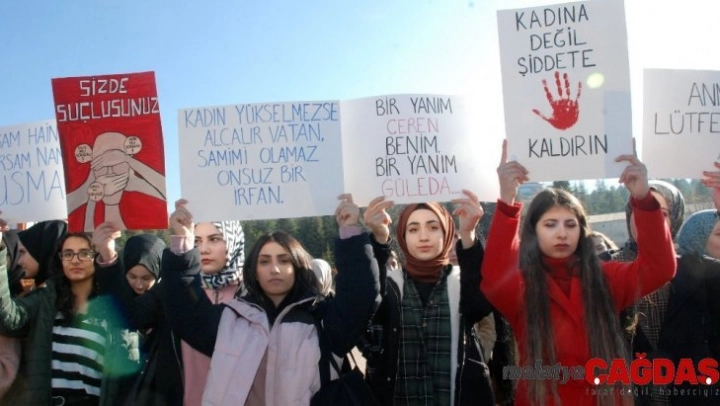 Üniversite öğrencileri kadına şiddete karşı yürüdü